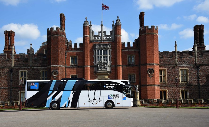 LONDON, ENGLAND – SEPTEMBER 10: Members of the the Fiji 2015 World Cup Rugby Union squad arrive at Hampton Court Palace for thier official welcoming Ceremony on September 10, 2015 in London, England. (Photo by Stuart C. Wilson/Getty Images for ER2015)