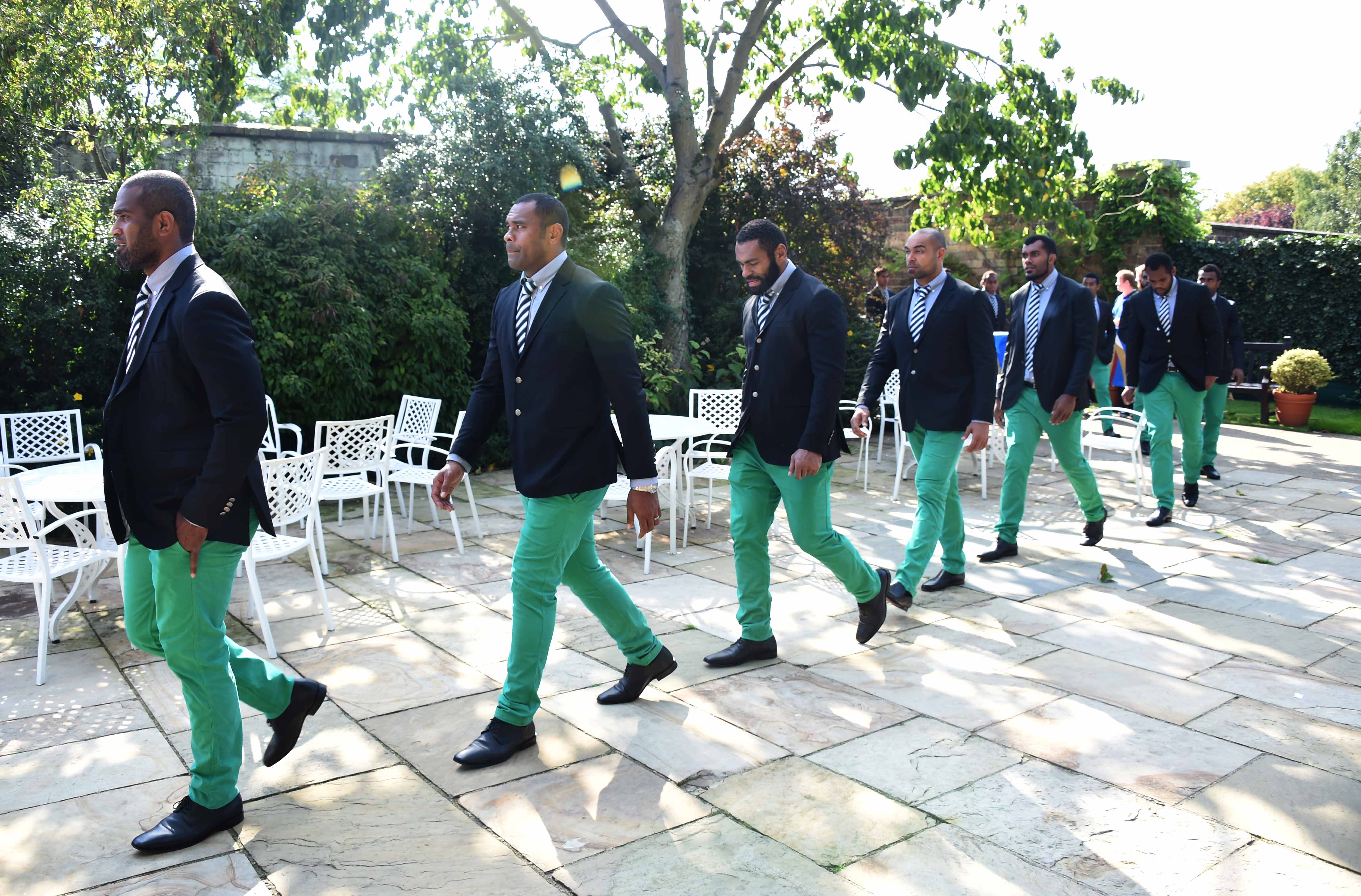 LONDON, ENGLAND – SEPTEMBER 10: Members of the the Fiji 2015 World Cup Rugby Union squad arrive at Hampton Court Palace for thier official welcoming Ceremony on September 10, 2015 in London, England. (Photo by Stuart C. Wilson/Getty Images for ER2015)