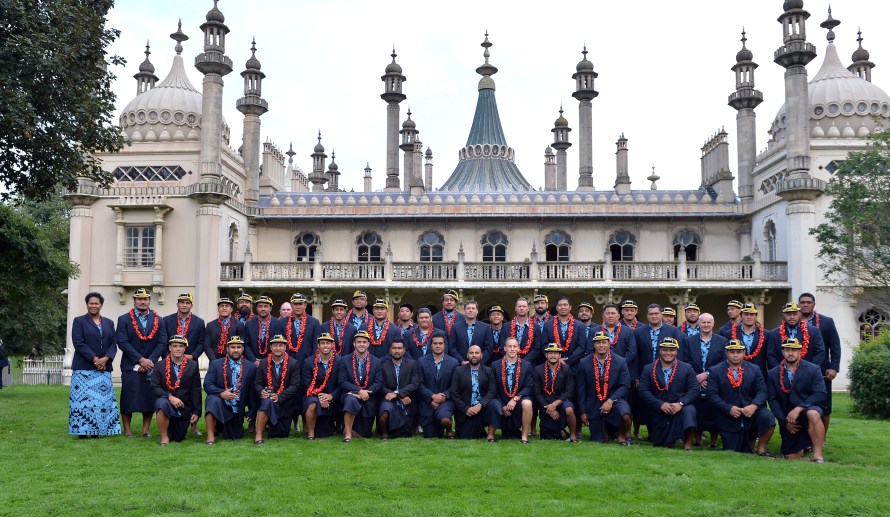 BRIGHTON, ENGLAND – SEPTEMBER 11: The Samoa 2015 World Cup team attend a welcoming ceremony at Brighton Dome on September 11, 2015 in Brighton, England. (Photo by Anthony Harvey/Getty Images for ER2015)