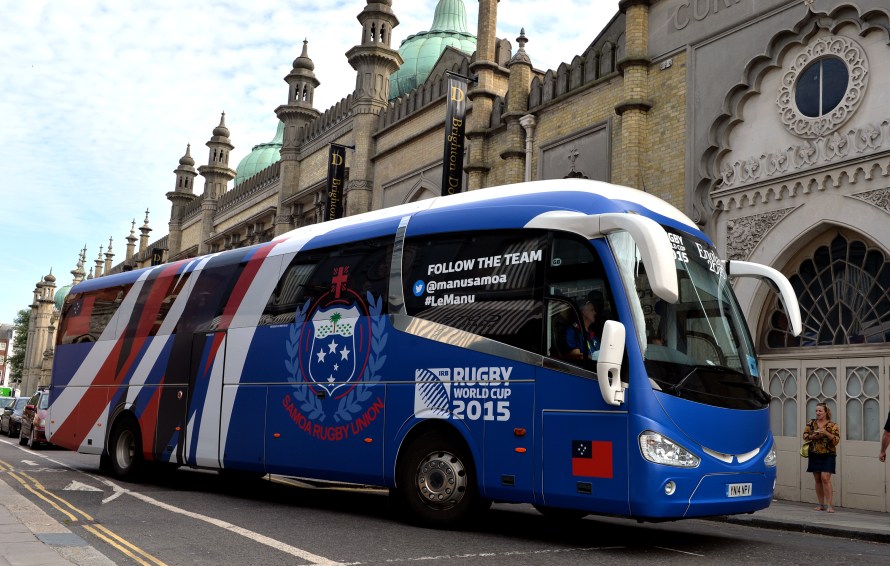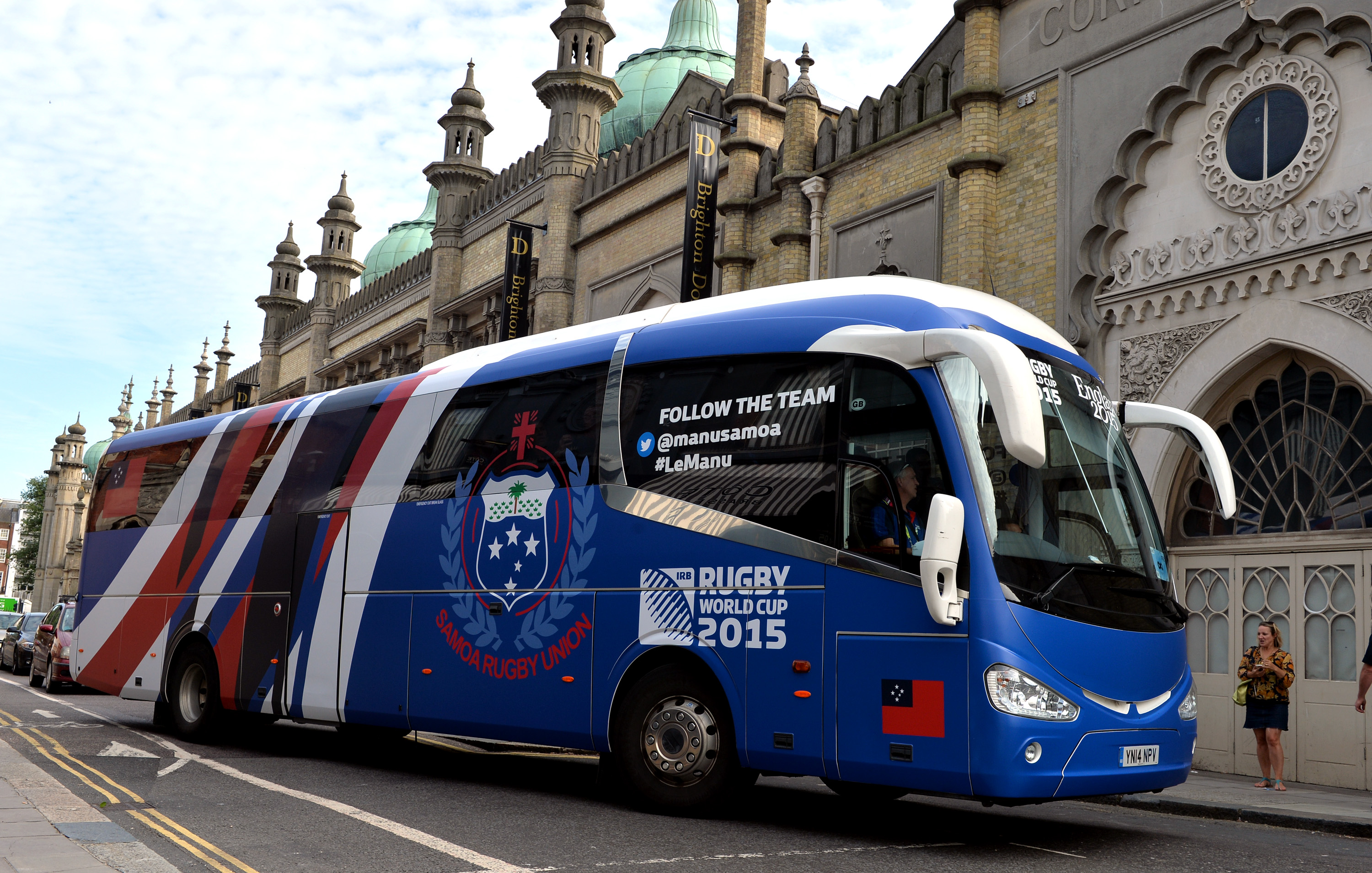 BRIGHTON, ENGLAND – SEPTEMBER 11: The Samoa 2015 World Cup team arrive at their welcoming ceremony at Brighton Dome on September 11, 2015 in Brighton, England. (Photo by Anthony Harvey/Getty Images for ER2015)