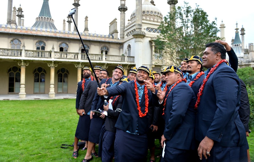 BRIGHTON, ENGLAND – SEPTEMBER 11: The Samoa 2015 World Cup team attend a welcoming ceremony at Brighton Dome on September 11, 2015 in Brighton, England. (Photo by Anthony Harvey/Getty Images for ER2015)