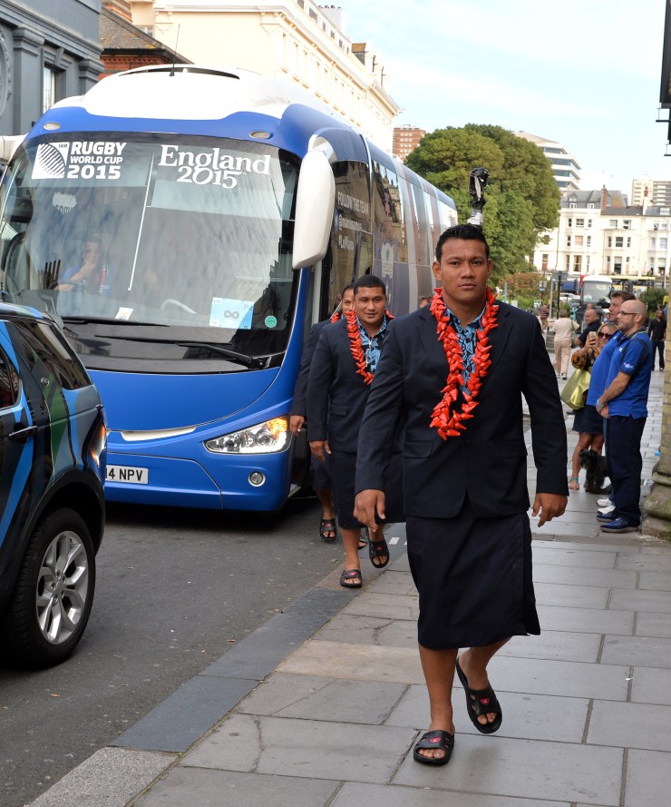 BRIGHTON, ENGLAND – SEPTEMBER 11: 2015 Samoa World Cup team Captain Ofisa Treviranus attends a welcoming ceremony at Brighton Dome on September 11, 2015 in Brighton, England. (Photo by Anthony Harvey/Getty Images for ER2015)