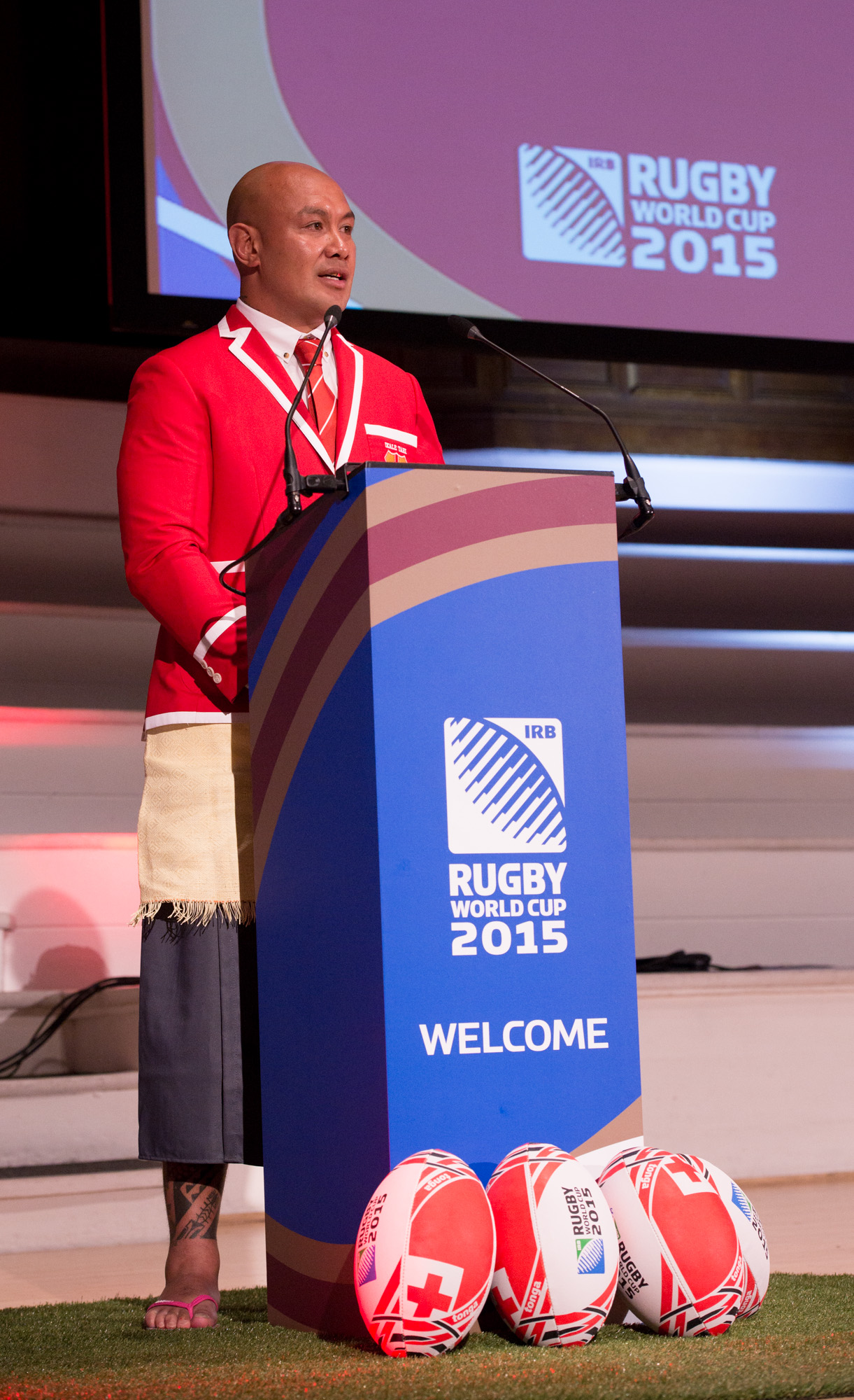 CHELTENHAM, ENGLAND – SEPTEMBER 12: RWC 2015 Welcome Ceremony – Tonga Captain Nili Lata at Cheltenham Town Hall on September 12, 2015 in Cheltenham, England. (Photo by Richard Stonehouse/Getty Images for ER2015)