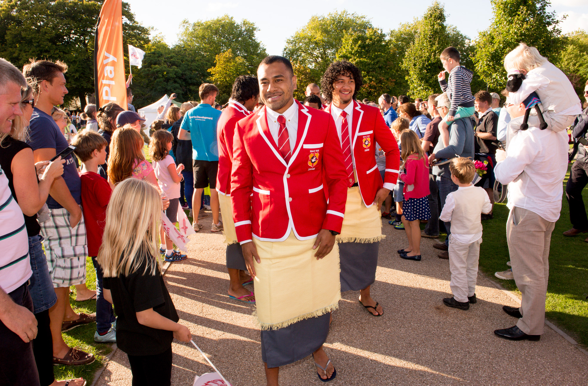 CHELTENHAM, ENGLAND – SEPTEMBER 12: Tonga Team at the RWC 2015 Welcome Ceremony – Tonga at Cheltenham Town Hall on September 12, 2015 in Cheltenham, England. (Photo by Richard Stonehouse/Getty Images for ER2015)