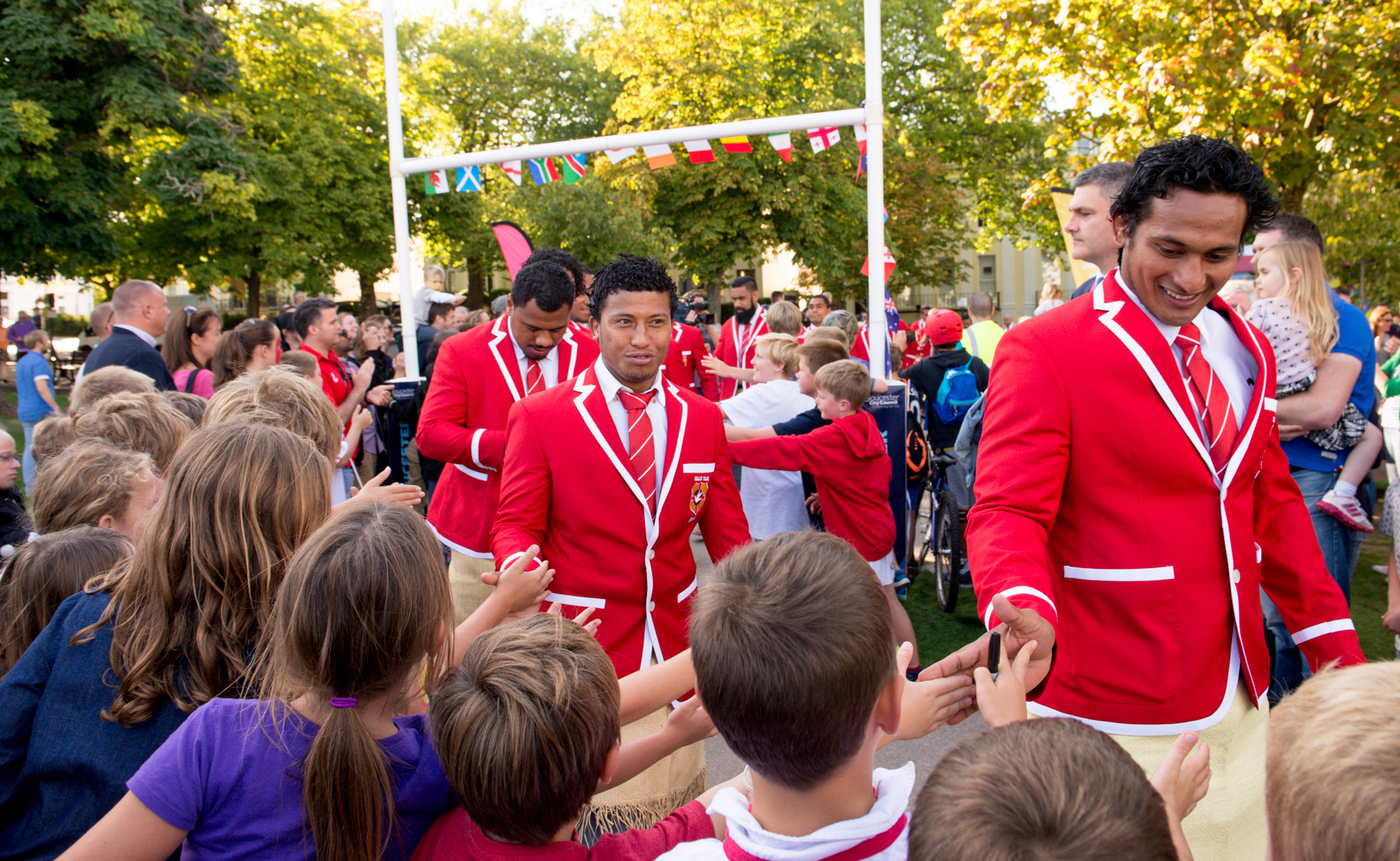 CHELTENHAM, ENGLAND – SEPTEMBER 12: Tonga Team at the RWC 2015 Welcome Ceremony – Tonga at Cheltenham Town Hall on September 12, 2015 in Cheltenham, England. (Photo by Richard Stonehouse/Getty Images for ER2015)