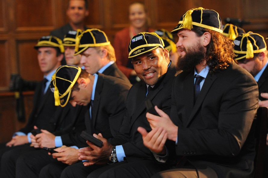 PORTSMOUTH, ENGLAND – SEPTEMBER 13: U.S. Squad during the 2015 Rugby Wolrd Cup USA Welcome function at HMS Nelson on September 13, 2015 in Portsmouth, England. (Photo by Eamonn M. McCormack/Getty Images for ER2015)