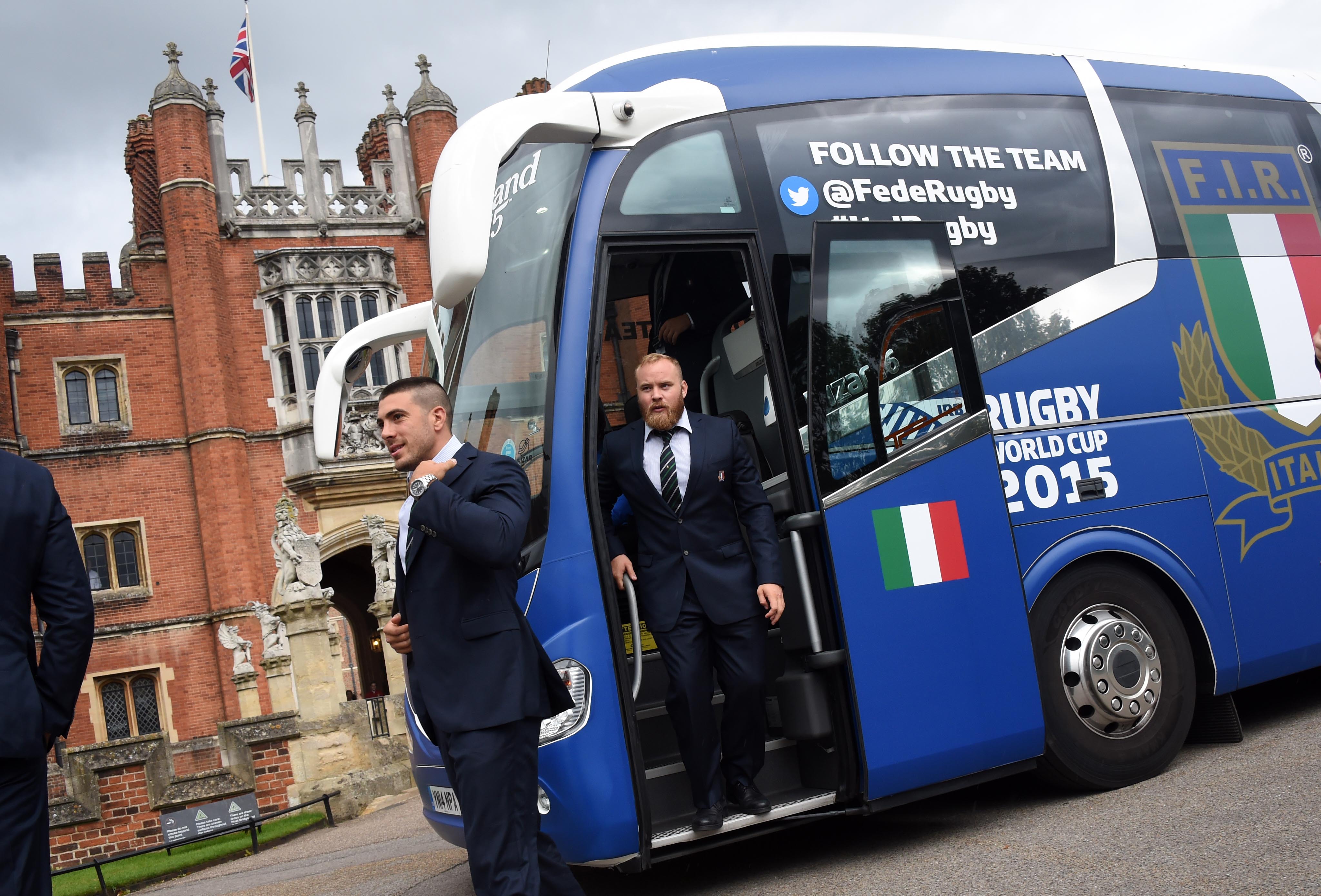 LONDON, ENGLAND – SEPTEMBER 14: The Italy Rugby World Cup 2015 Team arrive for a welcoming ceremony at Hampton Court Palace on September 14, 2015 in London, England. (Photo by Stuart C. Wilson/Getty Images for ER2015)