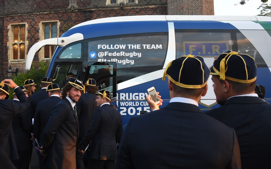 LONDON, ENGLAND – SEPTEMBER 14: The Italy Rugby World Cup 2015 Team arrive for a welcoming ceremony at Hampton Court Palace on September 14, 2015 in London, England. (Photo by Stuart C. Wilson/Getty Images for ER2015)