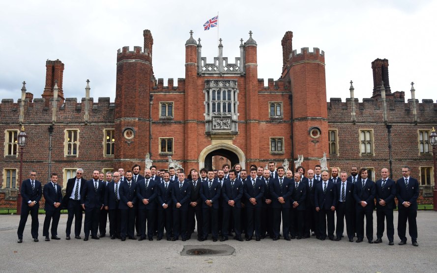 LONDON, ENGLAND – SEPTEMBER 14: The Italy Rugby World Cup 2015 Team arrive for a welcoming ceremony at Hampton Court Palace on September 14, 2015 in London, England. (Photo by Stuart C. Wilson/Getty Images for ER2015)