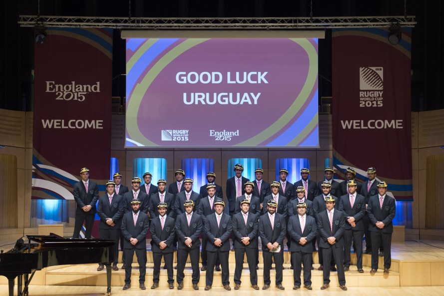 CARDIFF, WALES – SEPTEMBER 14: The Uruguay team pose for a picture at the Uruguay 2015 World Cup team welcoming ceremony at the Royal Welsh College of Music and Drama on September 14, 2015 in Cardiff, Wales.(Photo by Matthew Horwood/Getty Images for ER2015)