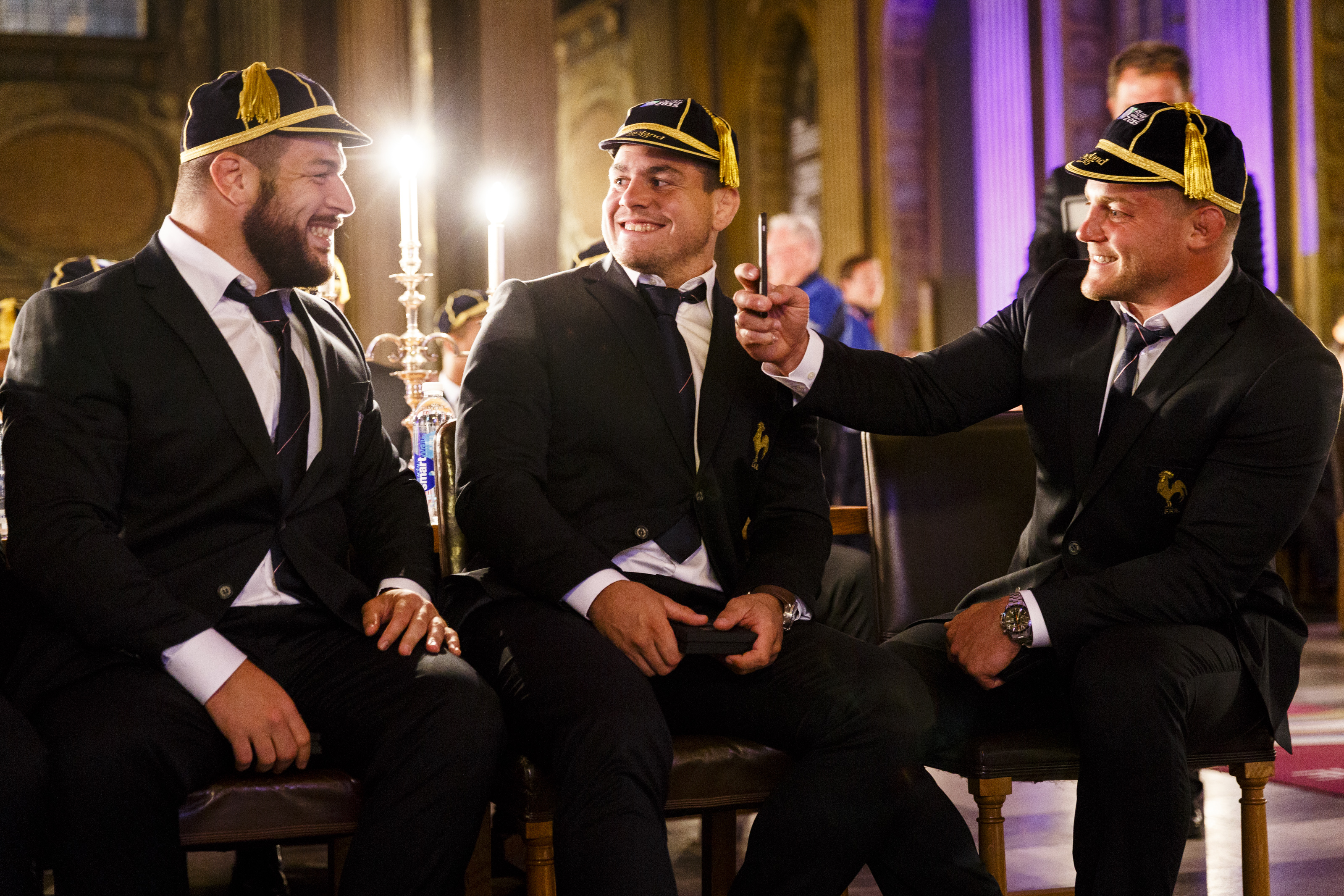 GREENWICH, ENGLAND – SEPTEMBER 14: France Rugby World Cup 2015 team mates attend their Welcome Ceremony in the Painted Hall at the Old Naval College Greenwich on September 14, 2015 in Greenwich, England. (Photo by Tristan Fewings/Getty Images for ER2015)