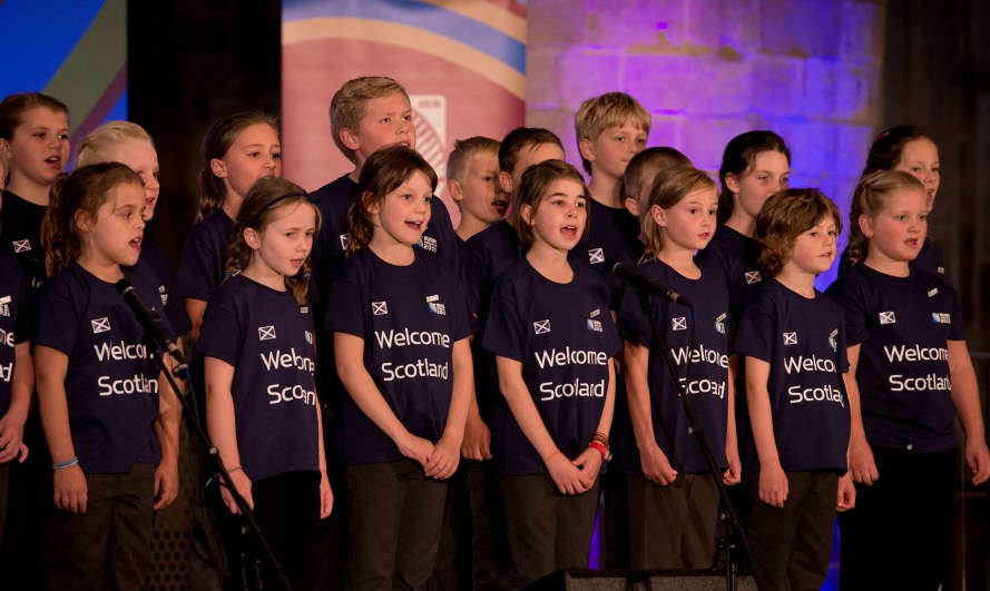 GLOUCESTER, ENGLAND – SEPTEMBER 17: Performance of « World in Union » by the Choir of Isbourne Valley School during the RWC 2015 Welcome Ceremony – Scotland at Gloucester Cathedral on September 17, 2015 in Gloucester, England. (Photo by Richard Stonehouse/Getty Images for ER2015)