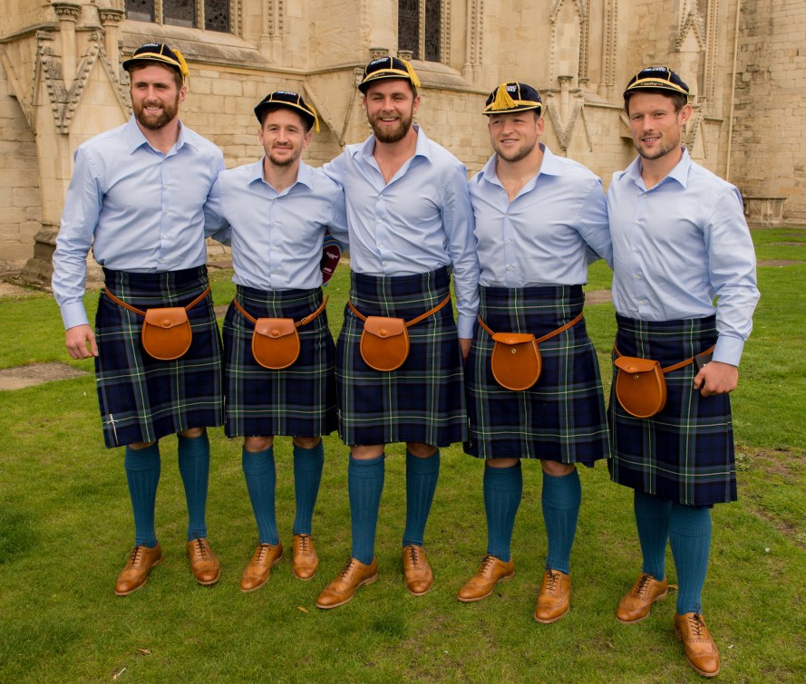 GLOUCESTER, ENGLAND – SEPTEMBER 17: Members of the Scotland team pose with their World Cup caps after the RWC 2015 Welcome Ceremony – Scotland at Gloucester Cathedral on September 17, 2015 in Gloucester, England. (Photo by Richard Stonehouse/Getty Images for ER2015)