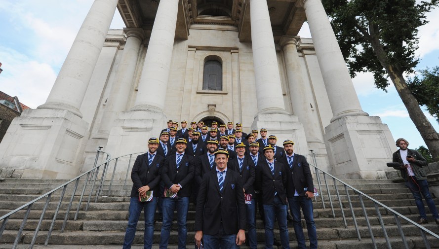 LONDON, ENGLAND – SEPTEMBER 17: The Romanian rugby squad during the RWC 2015 Welcome Ceremony – Romania at Christ Church, Spitalfields on September 17, 2015 in London, England. (Photo by Eamonn M. McCormack/Getty Images for ER2015)