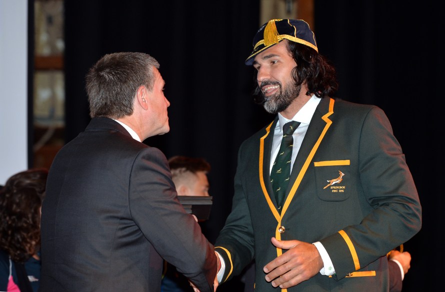 EASTBOURNE, ENGLAND – SEPTEMBER 13: Victor Matfield recieves his Cap during the South Africa 2015 World Cup team welcoming ceremony at the Winter Gardens on September 13, 2015 in Eastbourne, England. (Photo by Anthony Harvey/Getty Images for ER2015)