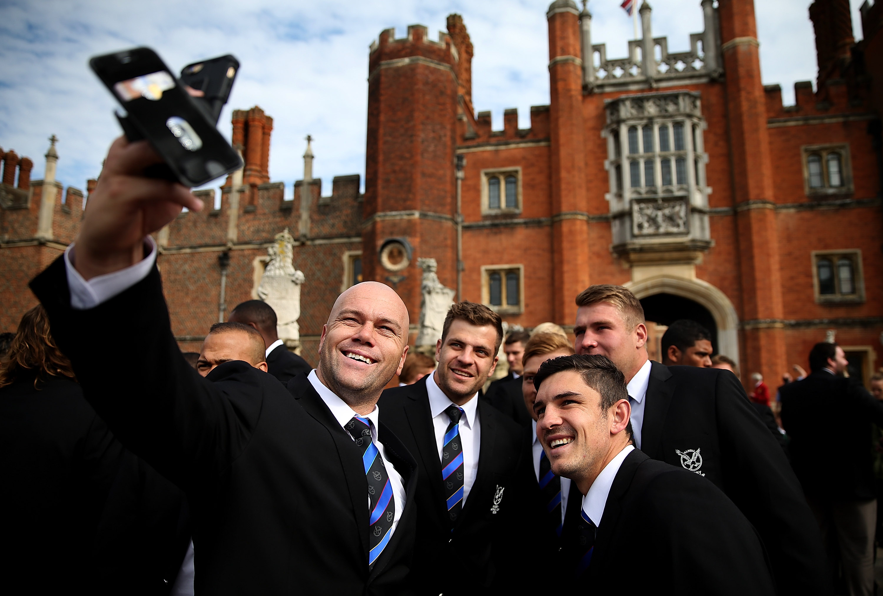 LONDON, ENGLAND – SEPTEMBER 17: The Namibian team take pictures around Hampton Court Palace during the RWC 2015 Welcome Ceremony for Namibia at Hampton Court Palace on September 17, 2015 in London, England. (Photo by Ben Hoskins/Getty Images for ER2015)