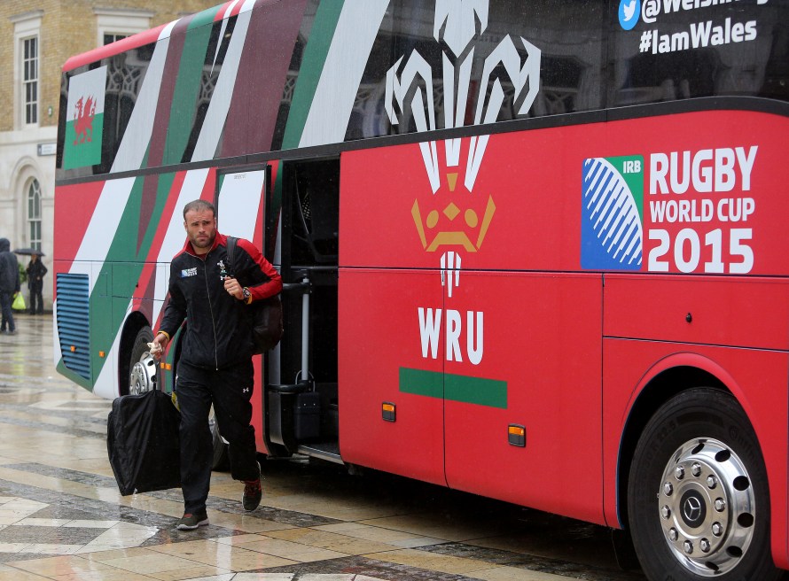 LONDON, ENGLAND – SEPTEMBER 21: Wales Jamie Roberts arrives during the RWC 2015 Welcome Ceremony for Wales at Guildhall on September 21, 2015 in London, United Kingdom. (Photo by Charlie Crowhurst/Getty Images)