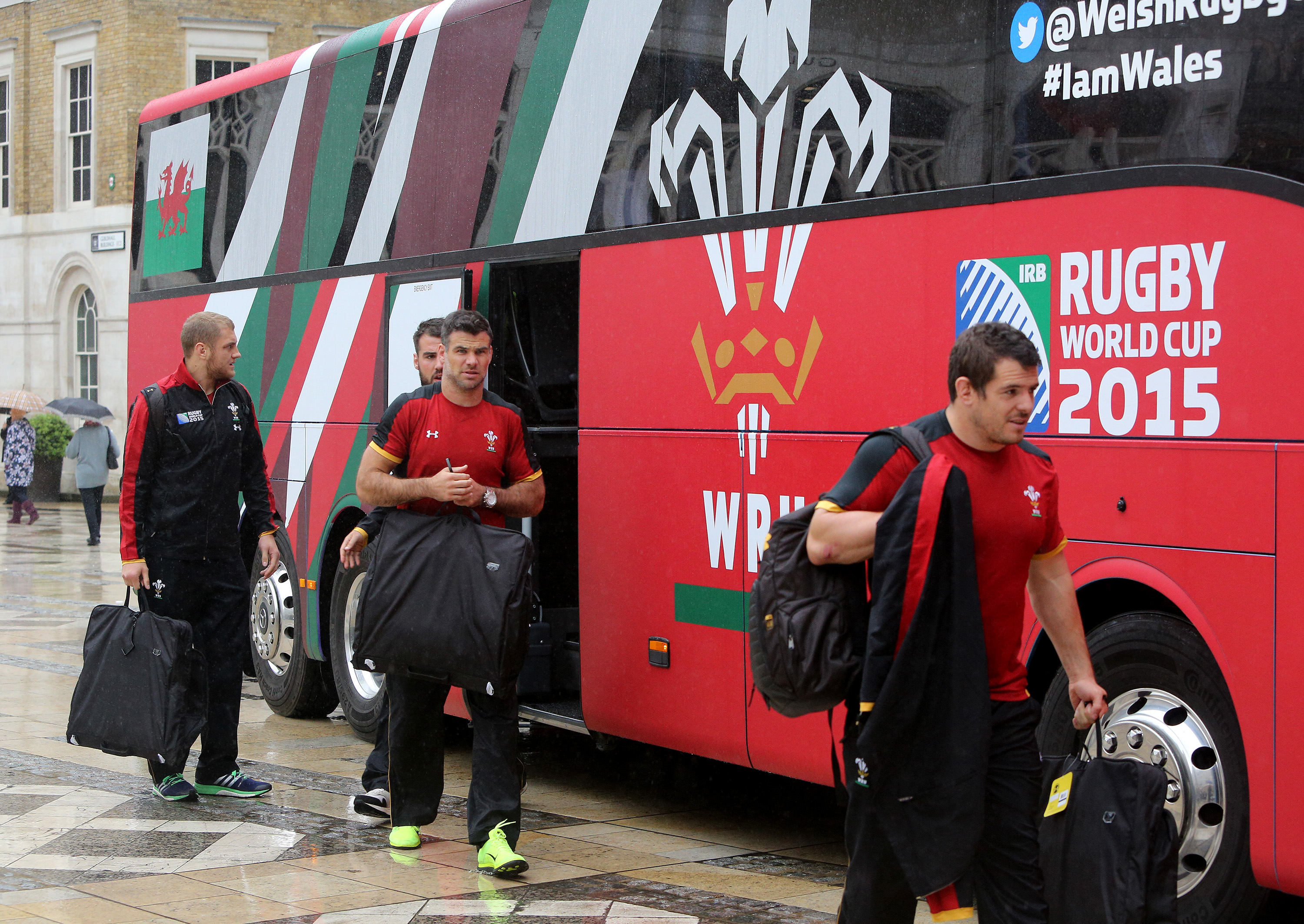 LONDON, ENGLAND – SEPTEMBER 21: The Welsh team arrive at Guildhall during the RWC 2015 Welcome Ceremony for Wales at Guildhall on September 21, 2015 in London, United Kingdom. (Photo by Charlie Crowhurst/Getty Images)