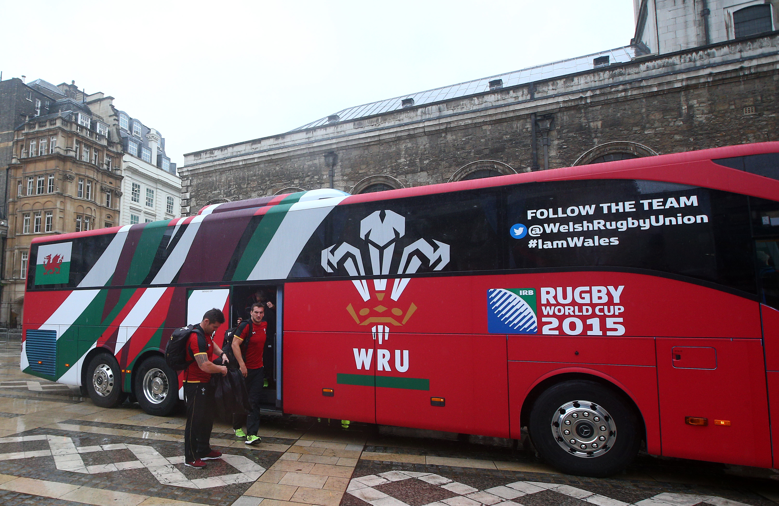 LONDON, ENGLAND – SEPTEMBER 21: The Welsh team arrive at Guildhall during the RWC 2015 Welcome Ceremony for Wales at Guildhall on September 21, 2015 in London, United Kingdom. (Photo by Charlie Crowhurst/Getty Images)