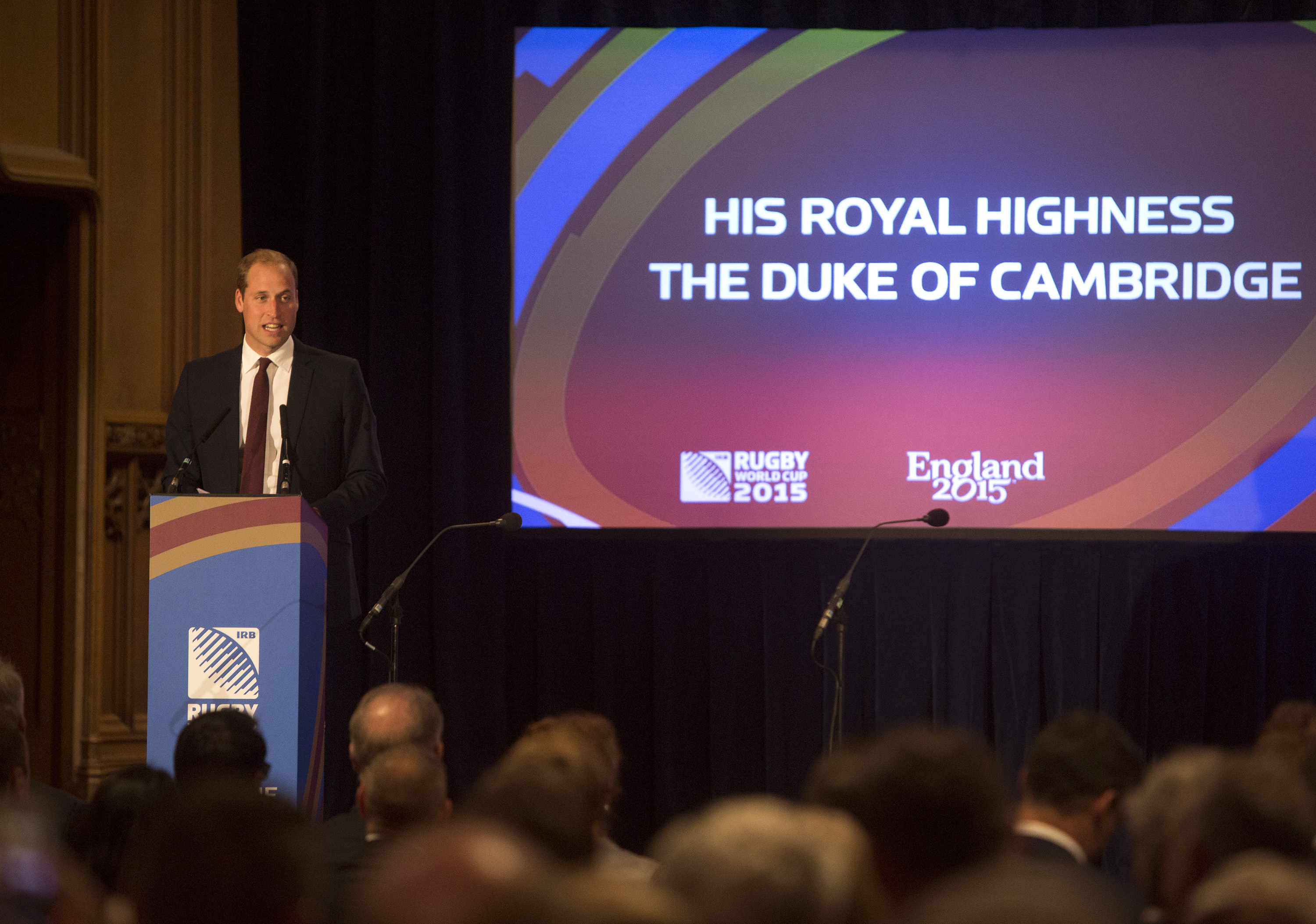LONDON, ENGLAND – SEPTEMBER 21: The Duke of Cambridge address’ the audience during the RWC 2015 Welcome Ceremony for Wales at Guildhall on September 21, 2015 in London, United Kingdom. (Photo by Charlie Crowhurst/Getty Images)
