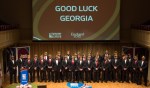 Une cérémonie a marqué l’arrivée de l’équipe pour le début de la Coupe du Monde de Rugby 2015, la campagne commencera au stade de Twickenham le 19 Septembre contre l’Italie.