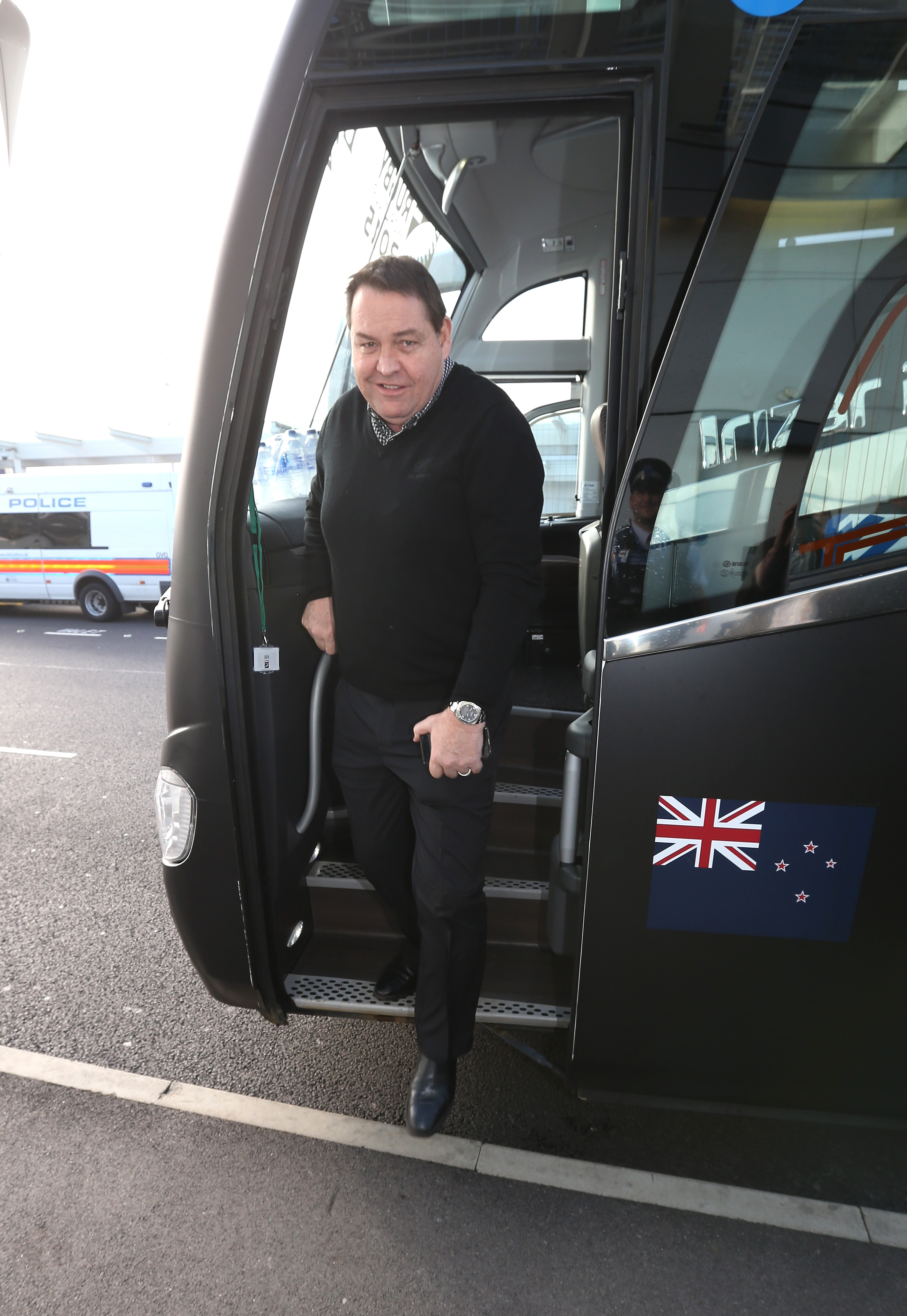 LONDON, ENGLAND – NOVEMBER 02: Steve Hansen, the head coach of Rugby World Cup winners, the New Zealand All Blacks, arrive at Heathrow Airport at the start of his journey back to New Zealand on November 2, 2015 in London, United Kingdom. (Photo by David Rogers/Getty Images for England 2015)