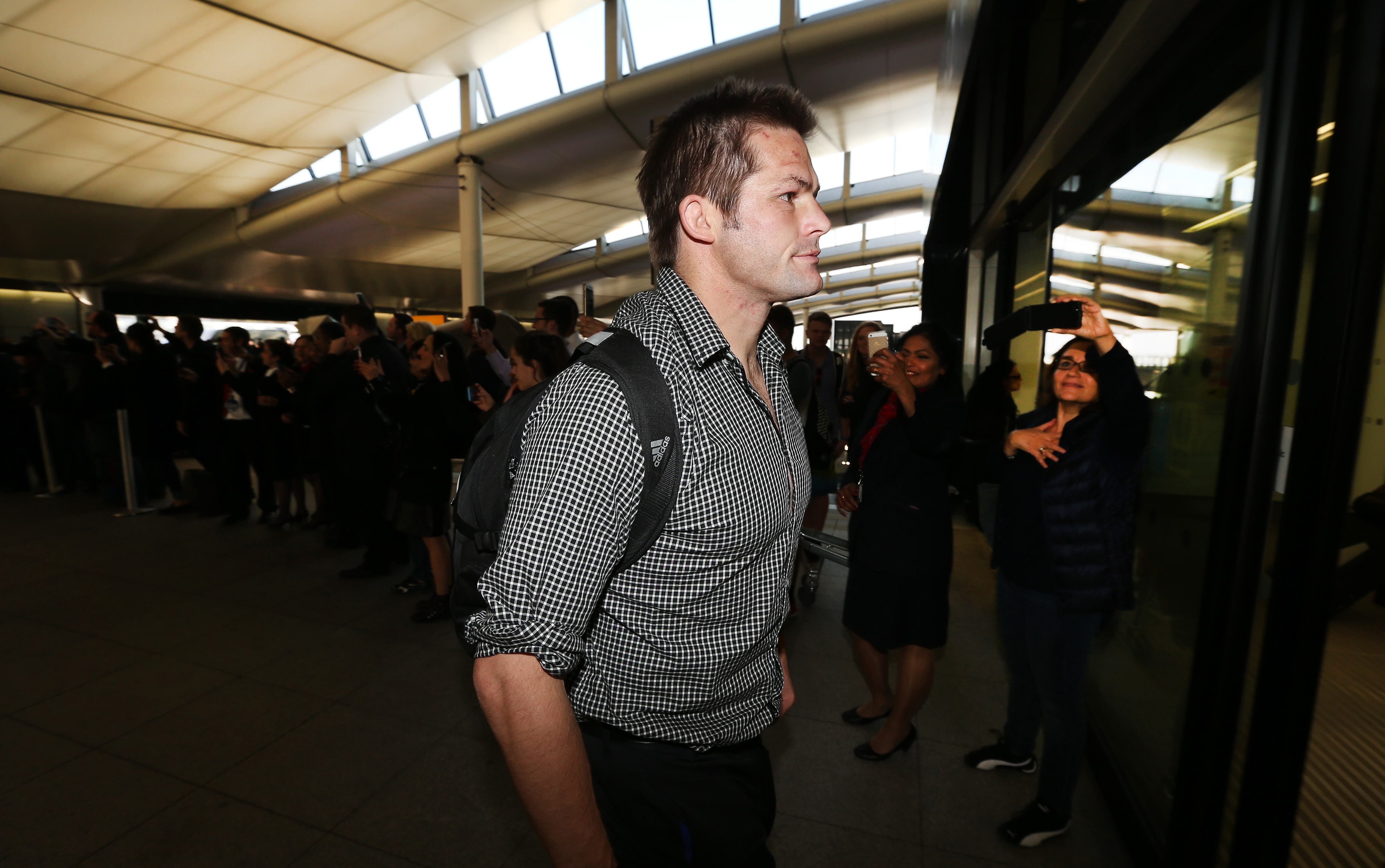 LONDON, ENGLAND – NOVEMBER 02: Richie McCaw, the captain of Rugby World Cup winners, the New Zealand All Blacks, arrives at Heathrow Airport at the start of his journey back to New Zealand on November 2, 2015 in London, United Kingdom. (Photo by David Rogers/Getty Images for England 2015)