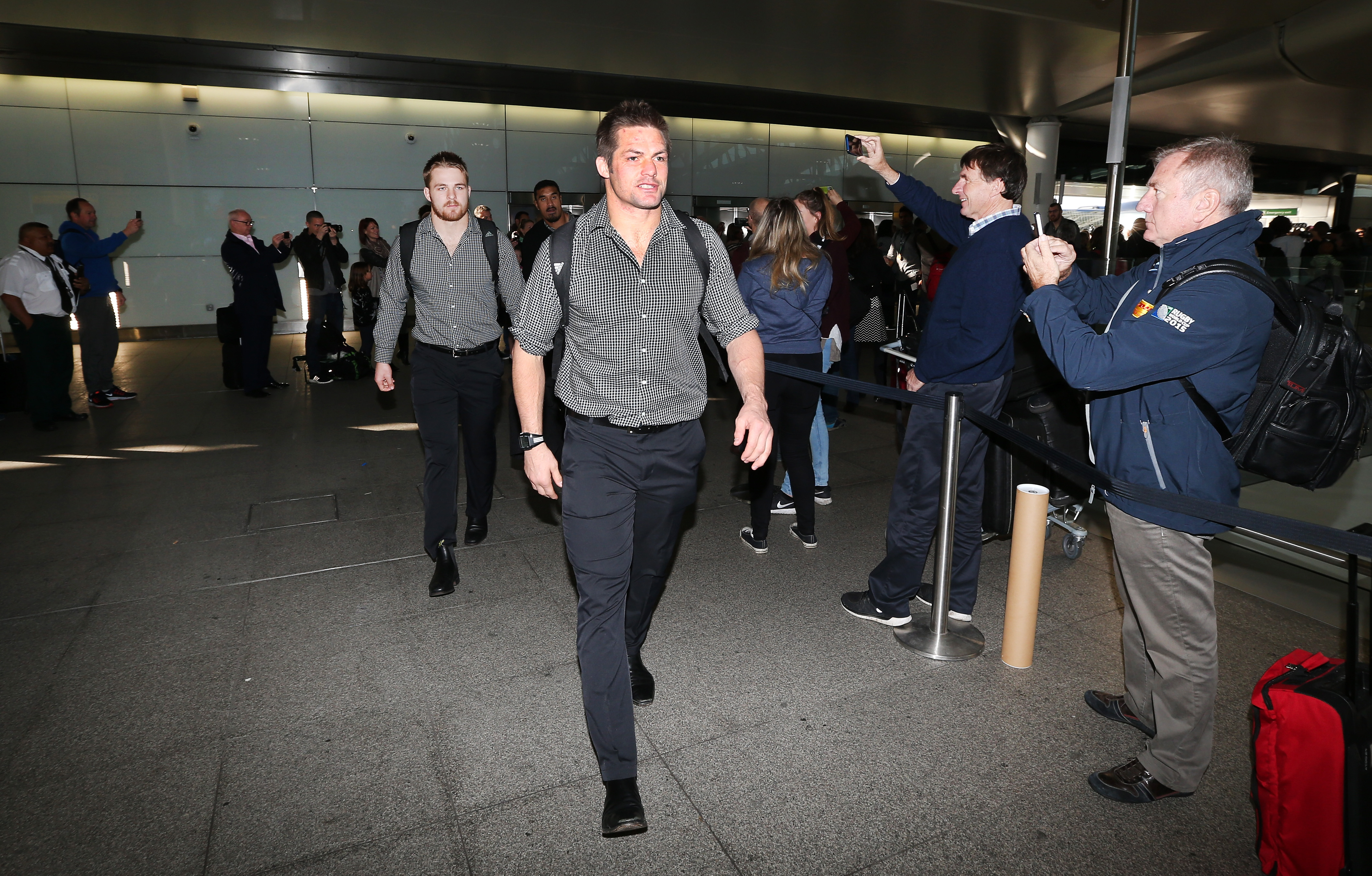 LONDON, ENGLAND – NOVEMBER 02: Richie McCaw, the captain of Rugby World Cup winners, the New Zealand All Blacks, arrives at Heathrow Airport at the start of his journey back to New Zealand on November 2, 2015 in London, United Kingdom. (Photo by David Rogers/Getty Images for England 2015)