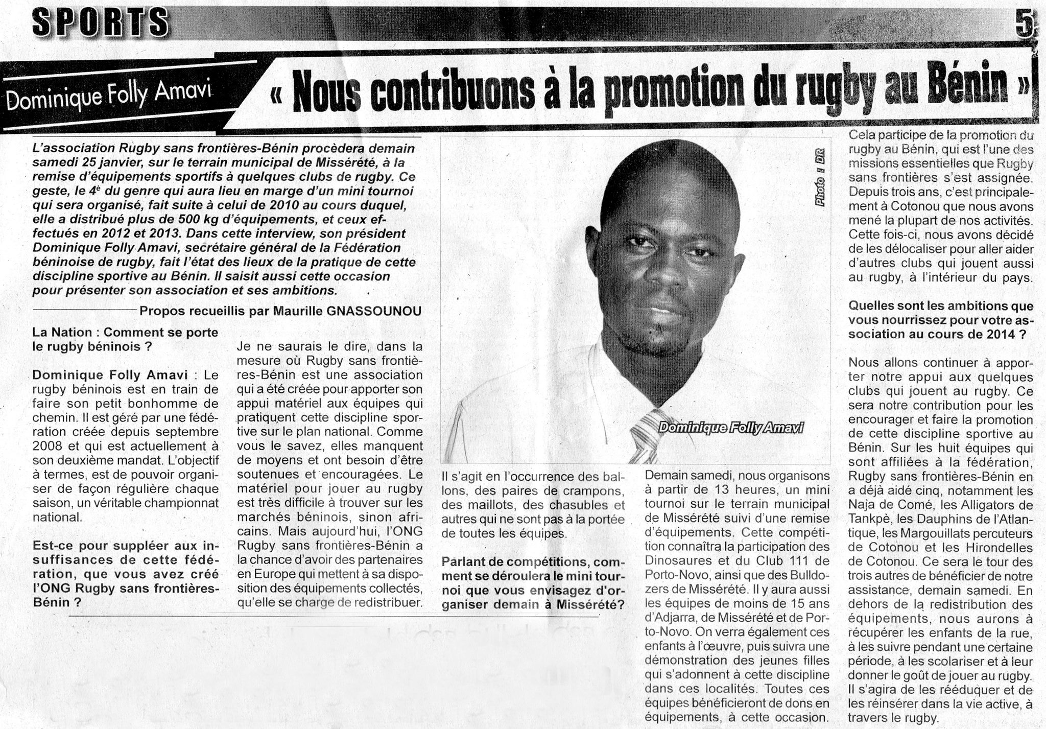 Quotidien national d information « La Nation » (Bénin) du 24/01/2014