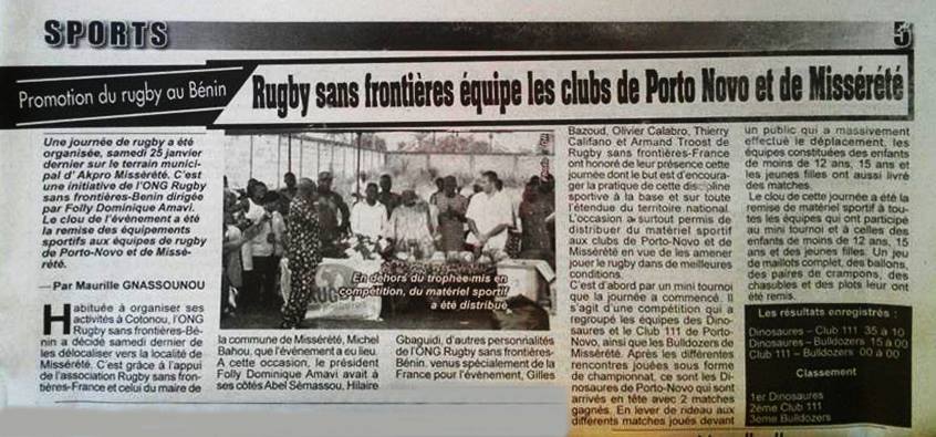 Quotidien national d information « Le Matinal » (Bénin) du 26/01/2014